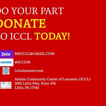 Please make checks payable to "ISLAMIC COMMUNITY CENTER OF LANCASTER" or "ICCL" or "ISLAMIC CENTER OF LANCASTER". You may send your gift to the mailing address; Islamic Commnity Center of Lancaster, 1002 Lititz Pike, Suite 294, Lititz, PA 17543